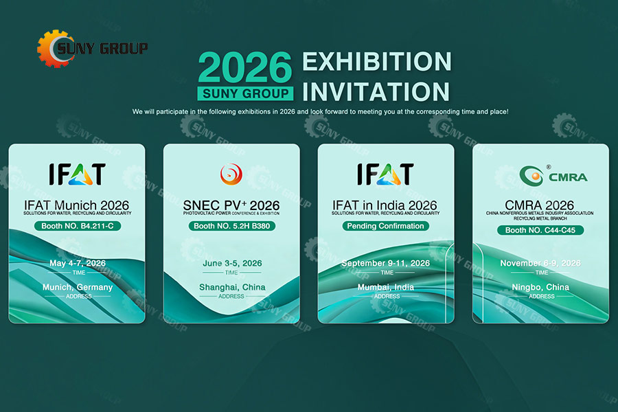 In 2026, SUNY GROUP will continue to strengthen communication with global customers by participating in four key international exhibitions in the recycling and renewable energy industries. We sincerely invite customers and partners from around the world to visit our booths…