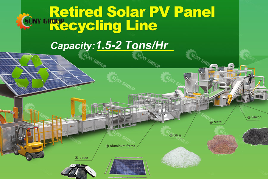 SUNYGROUP PV panel recycling line is designed to process different types of photovoltaic modules, including silicon-based, thin-film, and double-glass panels. Using innovative separation technologies, the system can effectively dismantle the panels and separate glass, silicon, aluminum frames, copper wires, and…